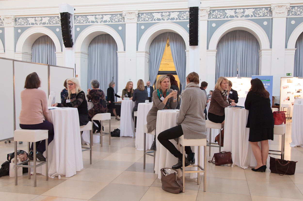 Beata Lange und Lisa Fenger läuteten um 12:00 Uhr und um 14:30 Uhr die Runden zum Business Speed Dating ein. Angela Fechner leitete den Workshop "Arbeiten 4.0 im Coworking Space".